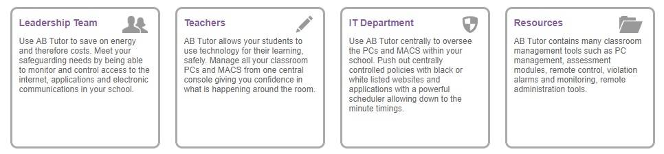 AB Tutor is the perfect teaching tool for networked classrooms and labs, allowing you to simply and effectively control, manage, monitor, demonstrate, support and collaborate with your students.