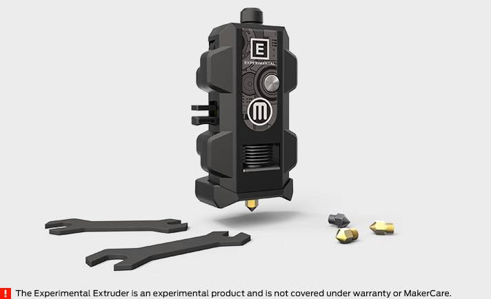 Note: The Experimental Extruder is an experimental product and is not covered under MakerCare